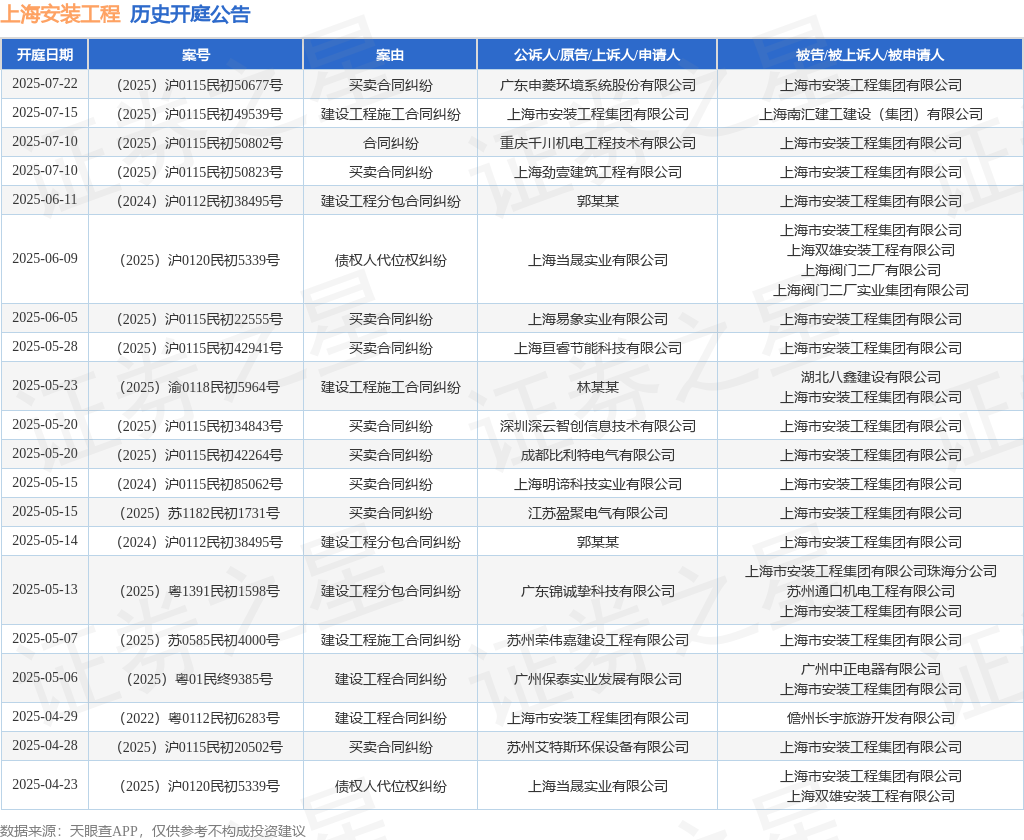 本站消息,根据天眼查APP显示,近日公布了一则上海市安装工程集团有限公司作为被告/被上诉人的开庭公告,详细内容如下: